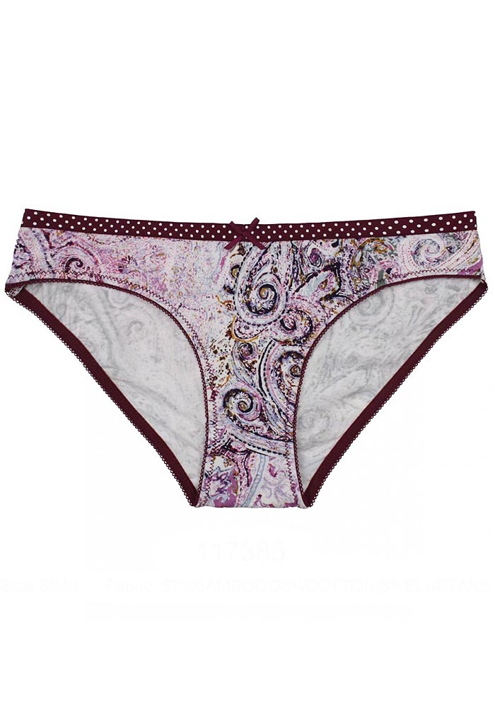 Женские трусики из набивного полотна, декорированы атласным бантиком.