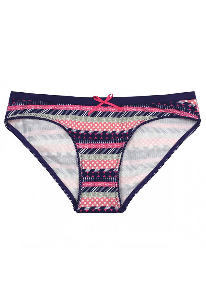 Женские трусики из набивного полотна, декорированы атласным бантиком.
