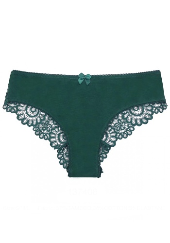 Женские трусики из однотонного полотна и кружева, украшены атласным бантиком.