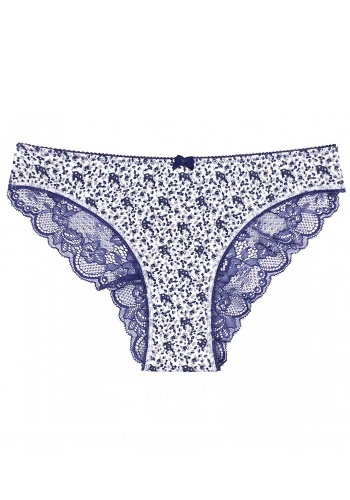 Женские трусики из набивного полотна и кружева, украшены атласным бантиком.