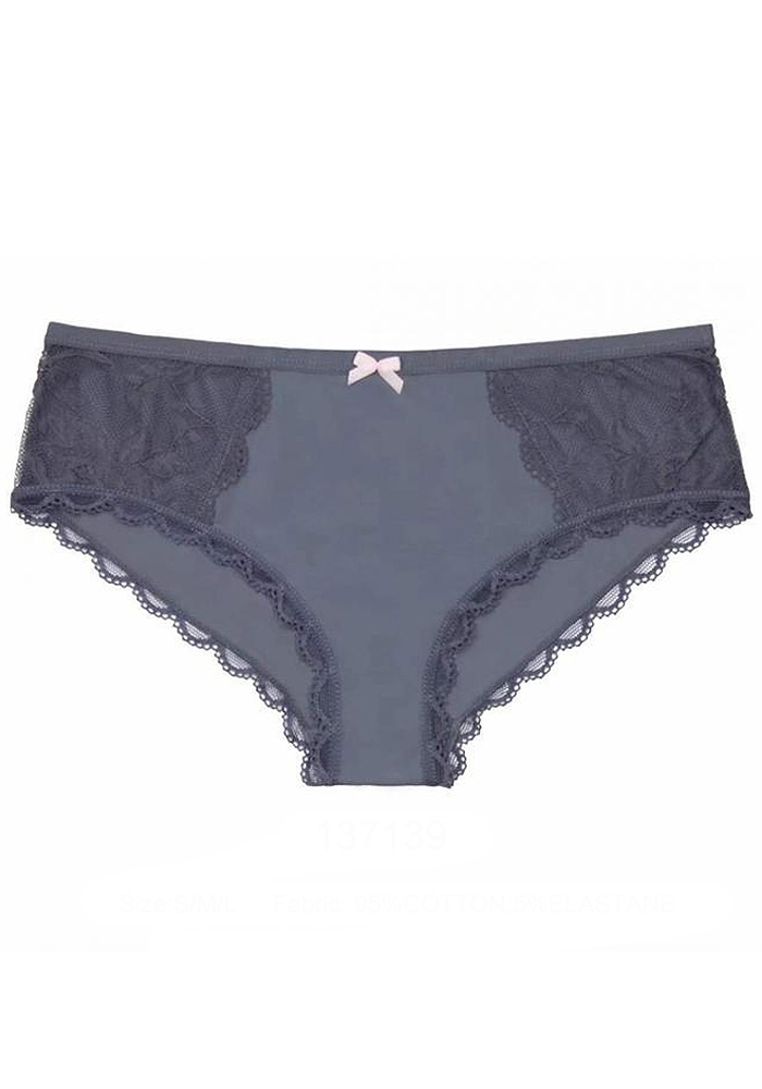 Женские трусики из однотонного полотна, украшены атласным бантиком и кружевом.