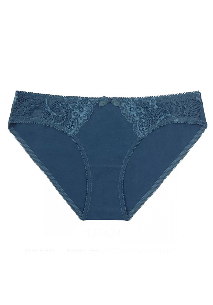 Женские трусики из однотонного полотна, украшены атласным бантиком и кружевом.