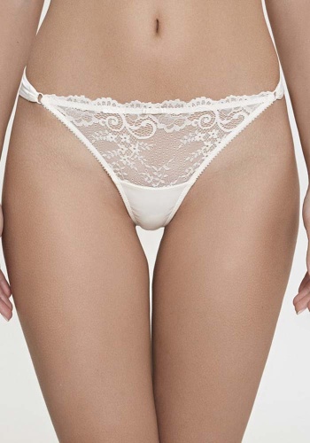 Детали трусов выполнены из эластичного полотна, эластичной сетки и кружева и декорированы эластичной лентой с фестонами. Передняя деталь декорирвоана бантиком. Задняя деталь декорирована кольцом.