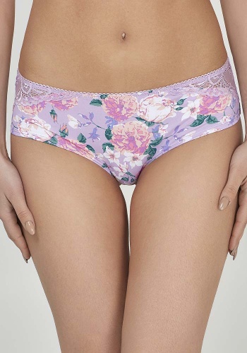 Трусики-боксеры выполнены из эластичного принтованного полотна и кружева. Линия талии декорирована эластичной лентой с фестонами. Задняя деталь декорирвана вырезом и бантиком.