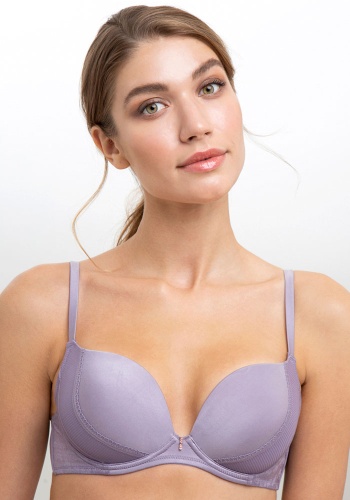 Бюстгальтер из эластичного кружева на косточках. Модель с формованной чашкой с Push-up для размеров 70AB, 75ABC, 80B и без Push-up для размеров 70C, 75DE, 80CDE, 85BCD. Новая модель формованной чпшки с анатомичным уплотнением и красивым фигурным вырезом декольте. Чашки втачаны в пояс. Бретели регулируемые, не съемные.