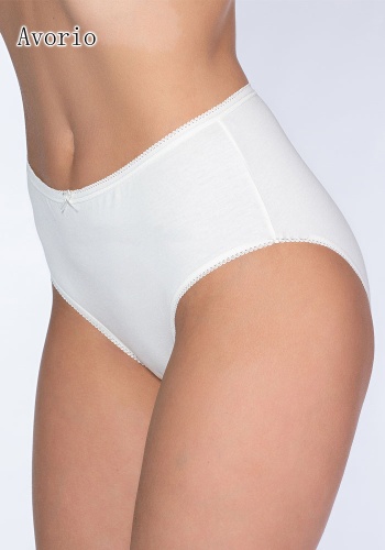 Трусы слип-макси из хлопка с эластаном, ажурная отделка края, спереди аппликация в виде бантика.