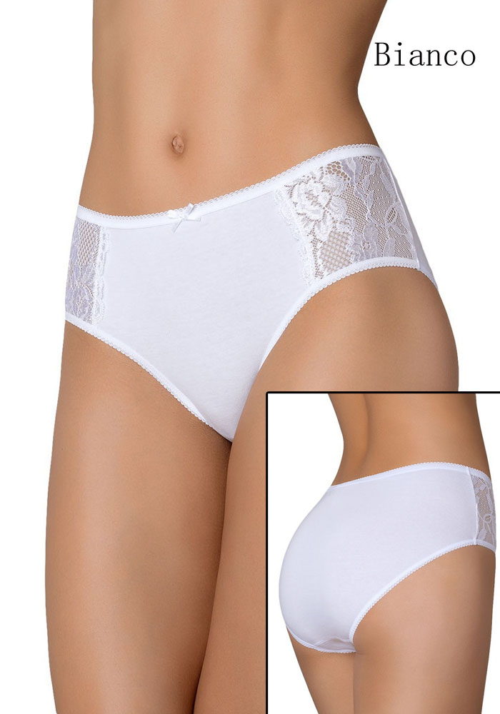 Трусы-слипы с регулируемой высотой талии, выполнены из высококачественного эластичного хлопка в сочетании с мягким эластичным кружевом с цветочным орнаментом, которое деликатно подчеркивает женственность. Максимальный комфорт при носке, используемый хлопок не подвержен деформации и пилингу. Края изделий обработаны эластиком с кружевными фестонами.