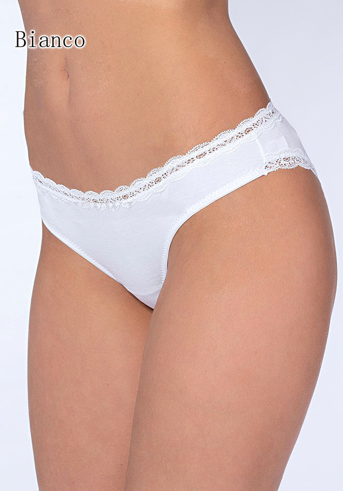 Классические трусы-бразильяна из хлопка с эластаном, пояс и края задней части обработаны кружевом, низкая посадка.