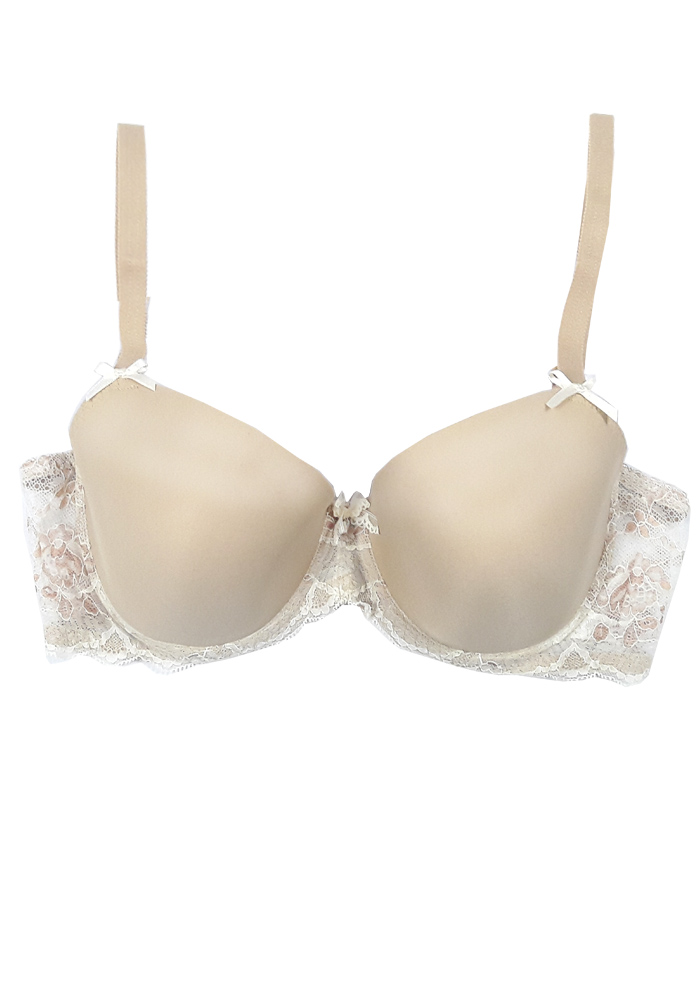 Женский бюст с формованной чашкой из тонкого поролона. Стан выполнен из эластичного кружева. Центральная деталь украшена бантиком. Бретели эластичные, регулируемые, не съемные.