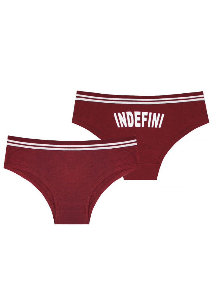Трусики-плавки однотонного цвета с контрастным поясом и надписью на задней детали.