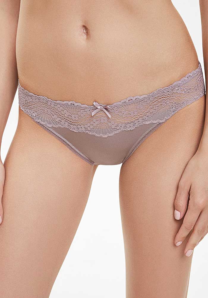Трусики классические выполнены из эластичного полотна и кружева. Передняя деталь декорирована бантиком.