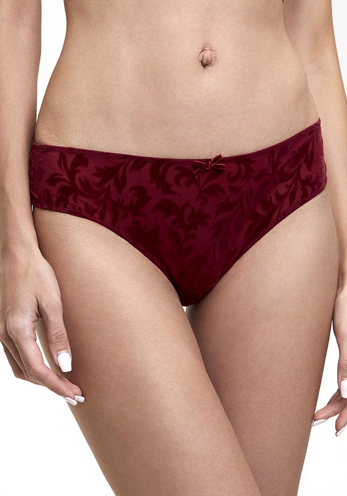 Трусики-стринги, передняя деталь выполнена из узорной эластичной сетки, задняя деталь выполнена из сплошной эластичной сетки. На поясе украшен бантиком.