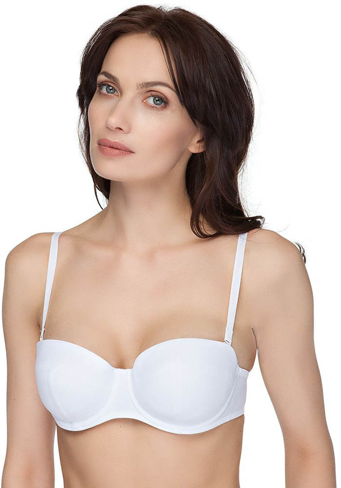 Практичный и удобный бюстгальтер-балконет с эффектом «пуш-ап». Съемные бретели. Бюстгальтер можно носить под облегающую одежду, под платье или топ без бретелей. Чашечки на х\б подкладке.