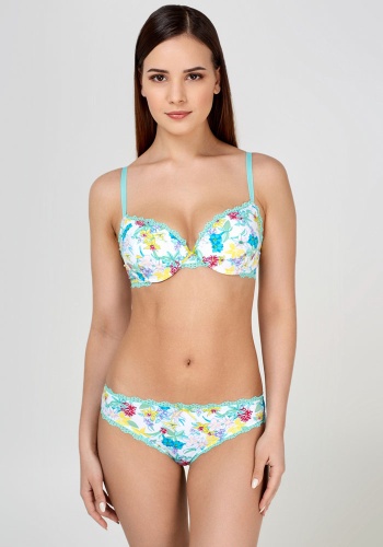 Трусики классические выполнены из эластичного принтованного полотна, декорированы узким кружевом. Передняя деталь декорирована бантиком.