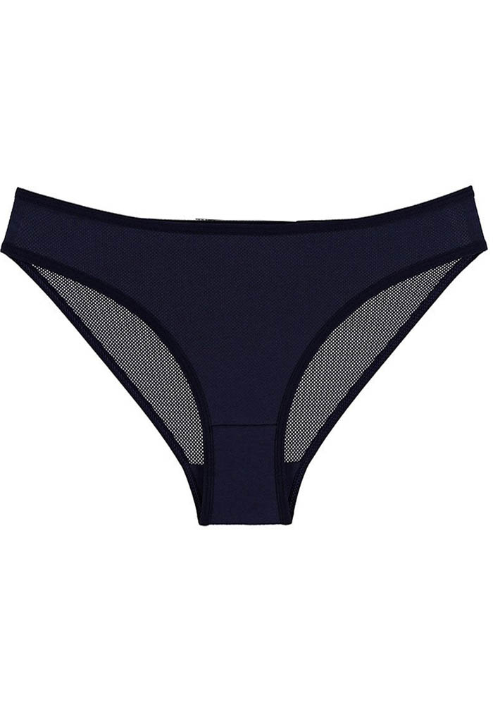 Женские трусы-слипы с низкой посадкой. Передняя деталь выполнена из однотонного полотна, Задняя деталь выполнена из сетчатого материала.