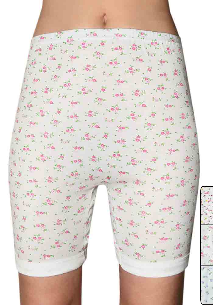 Женские панталоны с цветочным рисунком (рисунок меняется) на мягкой резинке облегающего покроя выше колена, двойная ластовница, по низу манжеты.