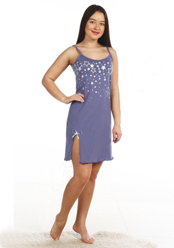 Сорочка полуприлегающего силуэта. На тонких бретелях, длиной до середины бедра.
