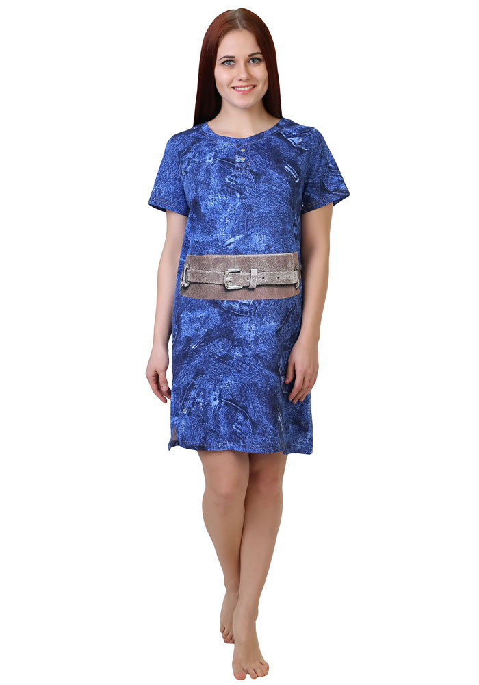 Туника женская "Ремень" прямой силуэт. По центру горловины полочки. Планка с пайетками. По низу талии принт в виде ремня. Вырез горловины обработан бейкой. Рукава втачные. На полочке внизу изделия разрезы, полочка короче спинки на 2 см.