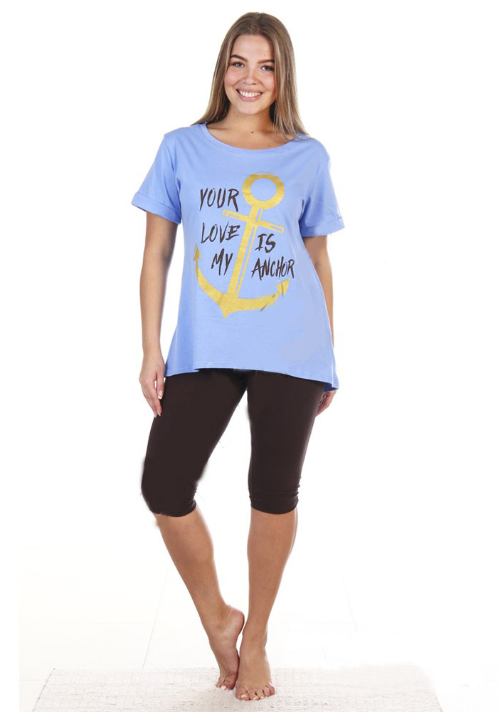 Костюм состоит из бридж и футболки. Бриджи на резинке. Футболка в морском стиле.
