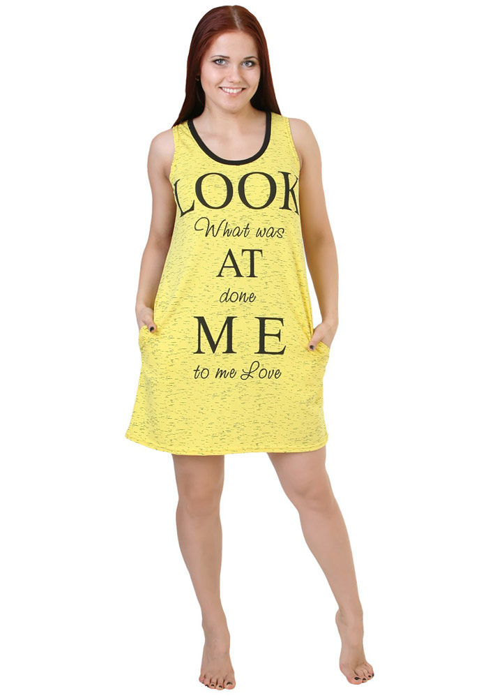 Туника-майка женская "Принт" из набивного кулирного полотна. Круглый вырез горловины с обтачкой из отделочного материала. В боковых швах карманы. На полочке принт.