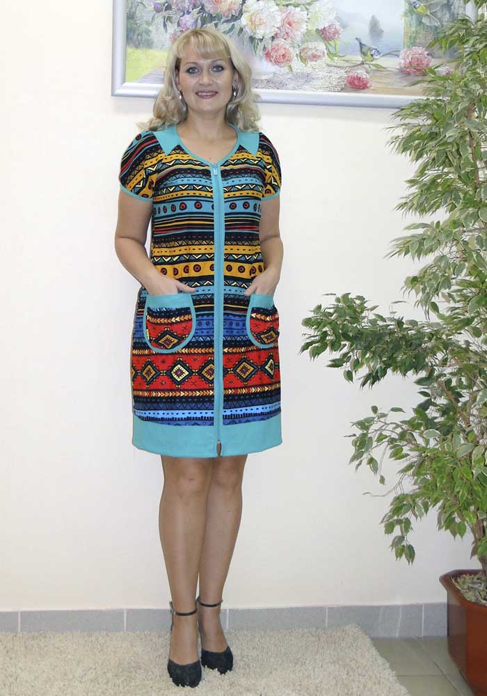 Халат женский "Варя", с коротким рукавом, на молнии, с карманами.