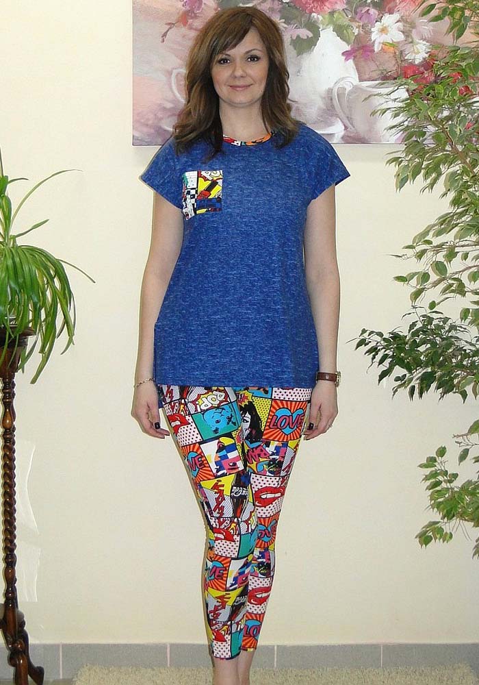 Костюм из кулирки "Бэкки". Футболка выполнена из ткани с эффектом "меланж", брюки выполнены из прнтованного полотна.