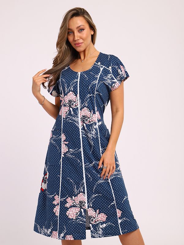 Халат женский "Нинэль", с коротким рукавом, на молнии, с карманами.