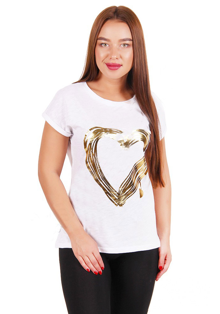 Футболка женская, полуприлегающего кроя. С модным принтом