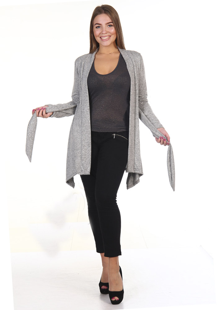 Кардиган-пиджак женский свободного кроя, с длинными рукавами.