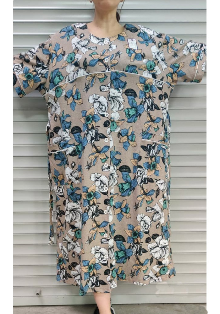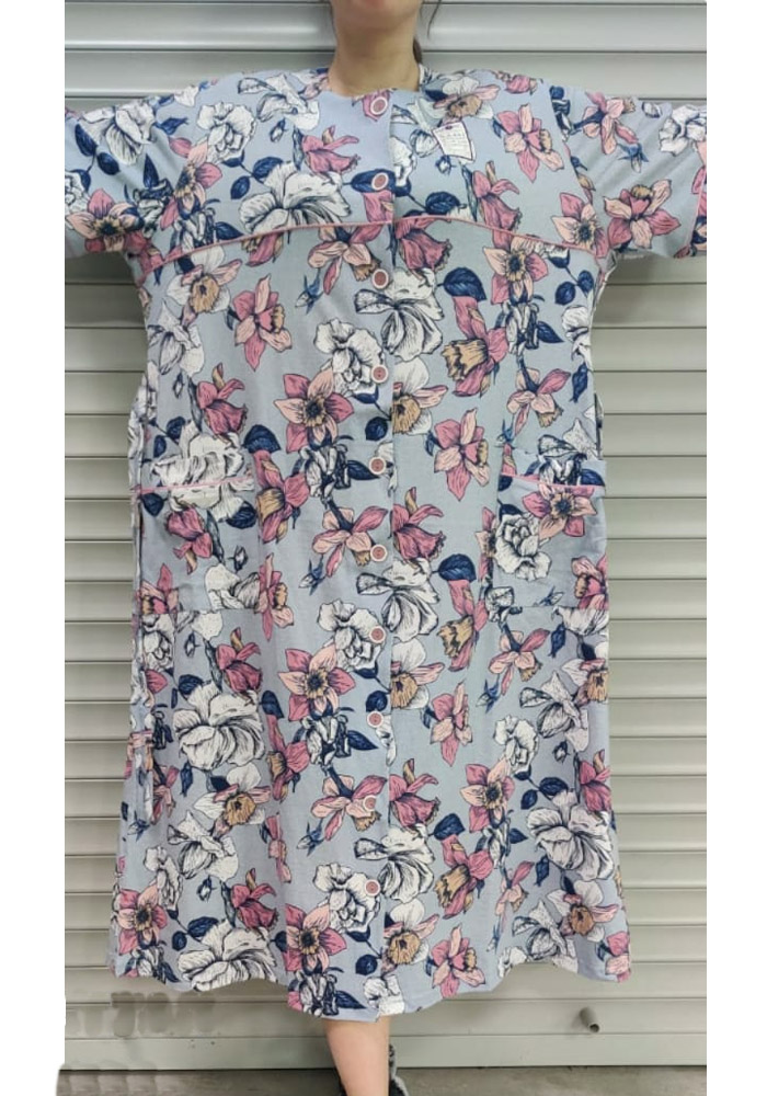 Женский халат-баттал на пуговицах.