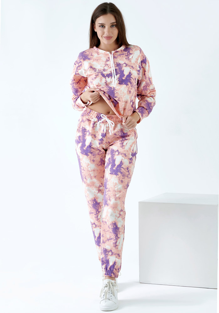 Молодежный костюм состоит из джемпера и брюк. Джемпер прямого покроя. Рукава втачные, длинные. Удлиненное плечо, горловина переда со шнуром. Длина до линии бедер. По низу притачной пояс.Разный уровень переда и спинки.