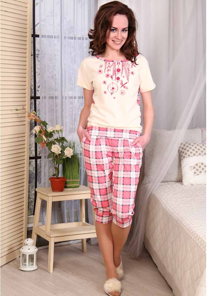 Домашний костюм: бриджи с манжетом снизу и футболка.