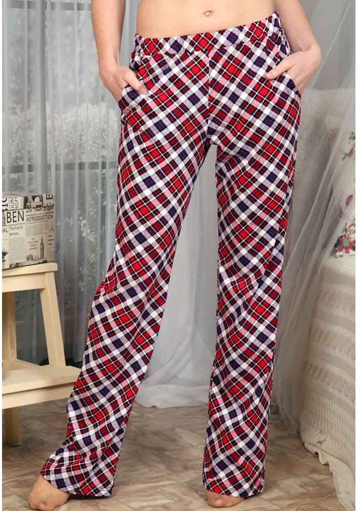 Классические женские брюки для дома. Выполнены на поясе с резинкой, с внутренними карманами. Трикотажное полотно с рисунком клетка.
