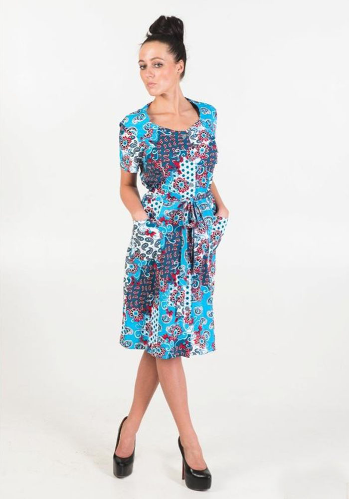 Женский классический халат изготовлен из набивной кулирки новой коллекции. Халат выполнен на пуговицах, с рельефами и карманами, коротким рукавом.