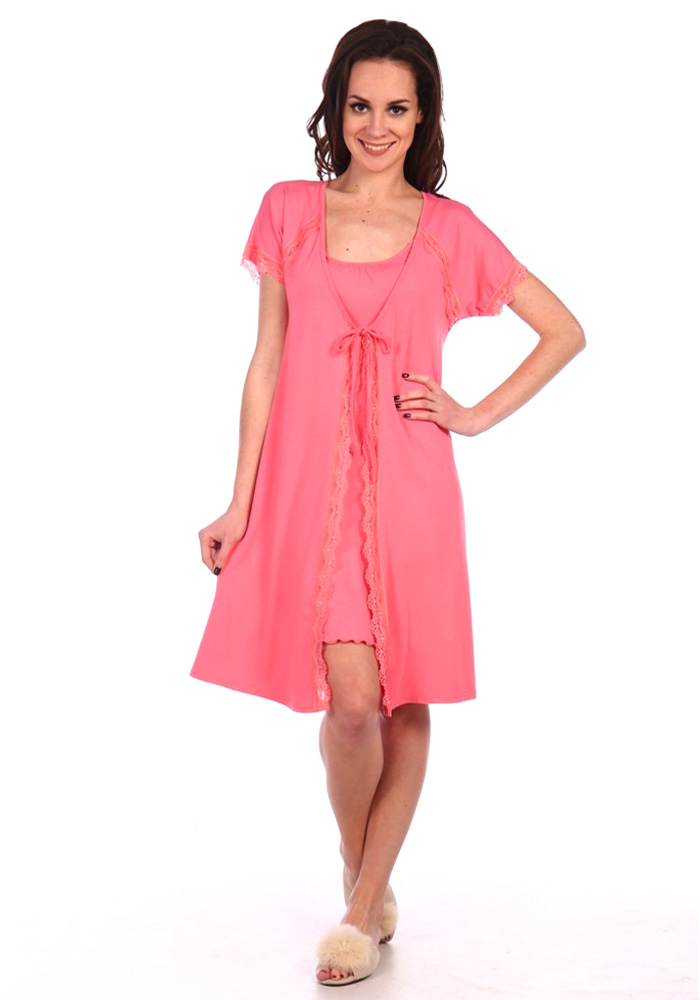 Женский комплект для сна, состоит из сорочки и халата на завязке.