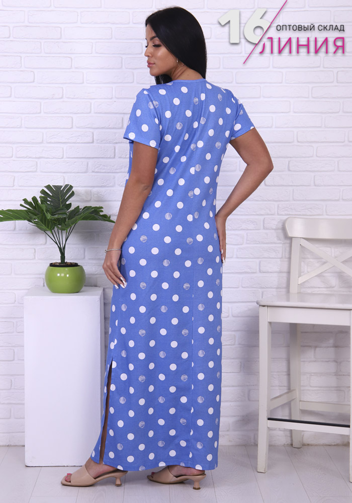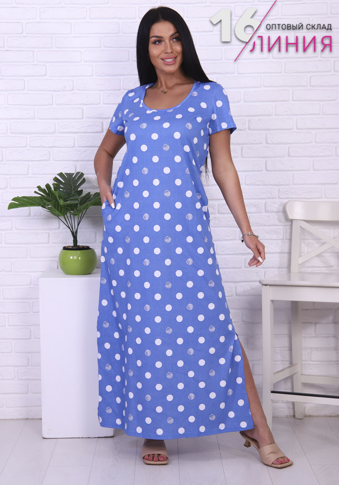 Женское платье "Памелла". Выполнено из принтованного полотна с узором "горошек". По бокам втачные карманы.