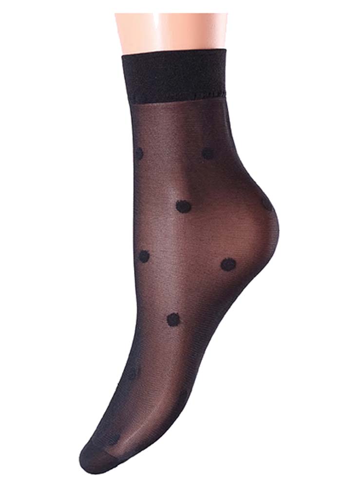 Тонкие фантазийные носки с оплетенным эластаном, плотностью 20 ден, с усиленным мыском и комфортной резинкой, по всей длине тканый узор в крупный горох.