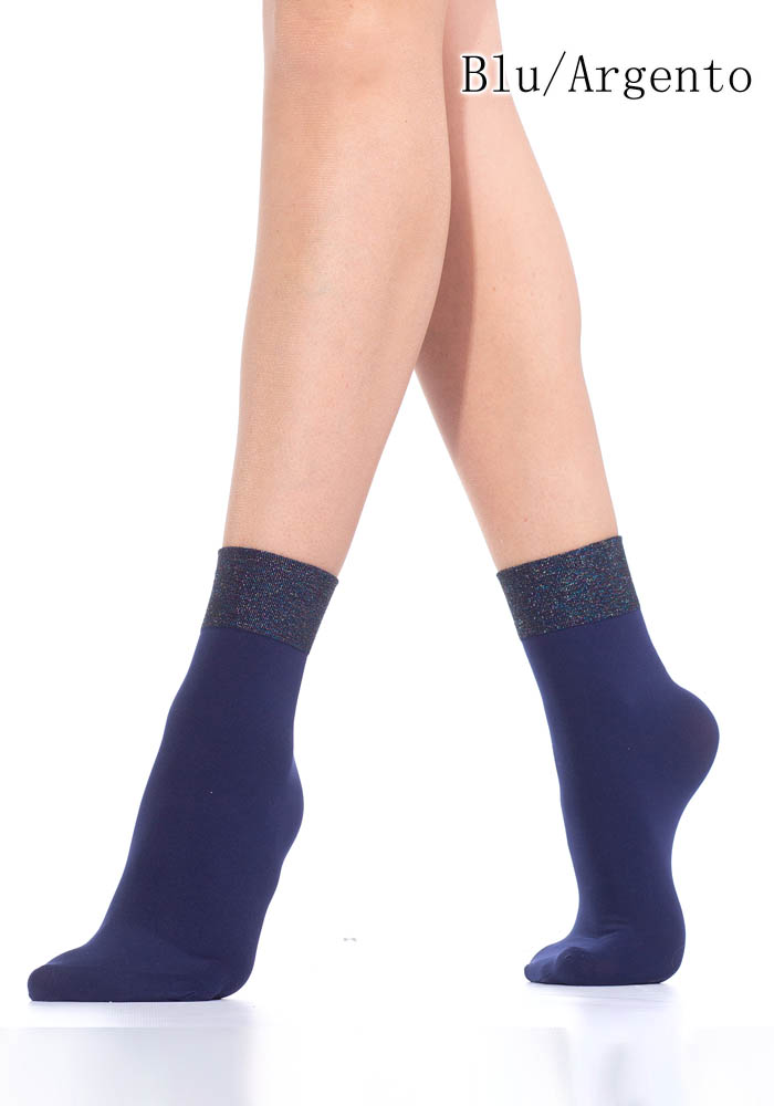Непрозрачные эластичные носки с укрепленным мысом, выполненные из микрофибры с вкраплениями блестящей люрексовой нити на резинке. Модель выполнена по технологии 3D, благодаря которой обеспечивается повышенная прочность и устойчивость к затяжкам.
