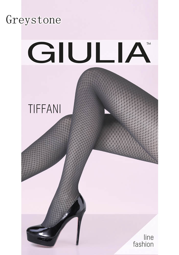 Полупрозрачные фантазийные колготки с оплетенным эластаном, плотностью 80 ден, с ластовицей, широким поясом, усиленными плоскими швами и мысками. Вся нога модели украшена тюлевым узором в виде сетки.