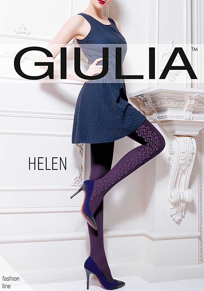 Непрозрачные фантазийные колготки из микрофибры с 3D эластаном, плотностью 70 ден, с укрепленным мыском, ластовицей, широким поясом и плоскими швами. Вдоль боковой части ноги модели размещен тканый узор "ромбы и зигзаги".