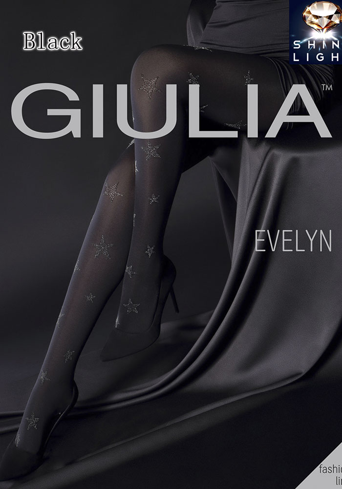 Непрозрачные фантазийные колготки с оплетенным эластаном, плотностью 60 ден, с широким комфортным поясом, ластовицей и плоскими швами. Вся нога модели украшена тканым узором с люрексом "звездочки".