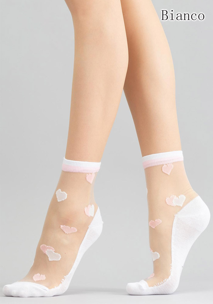 Женские фантазийные носки под кроссовки, выполненные из хлопка и прозрачной синтетической мононити. У модели комфортная резинка "в полоску" и усиленная стопа, прозрачная часть украшена разноцветным рисунком "сердца".