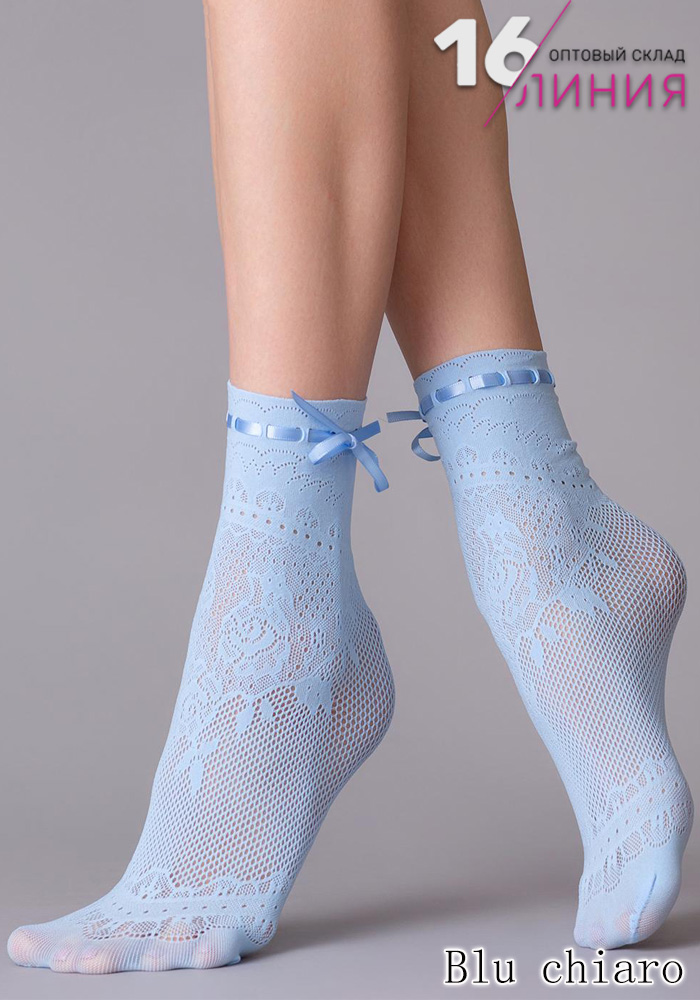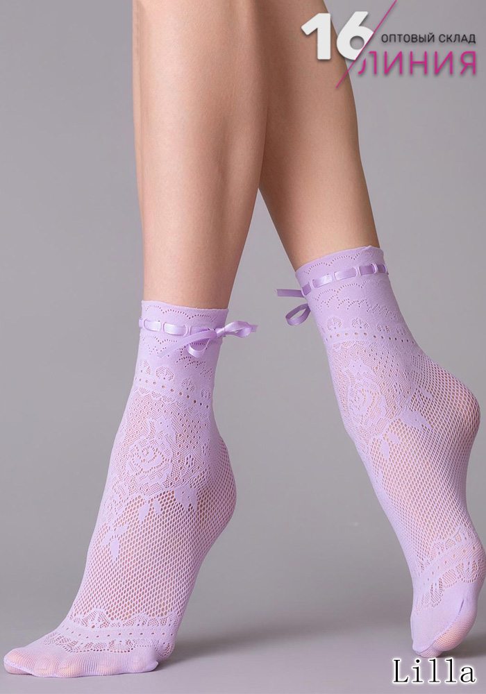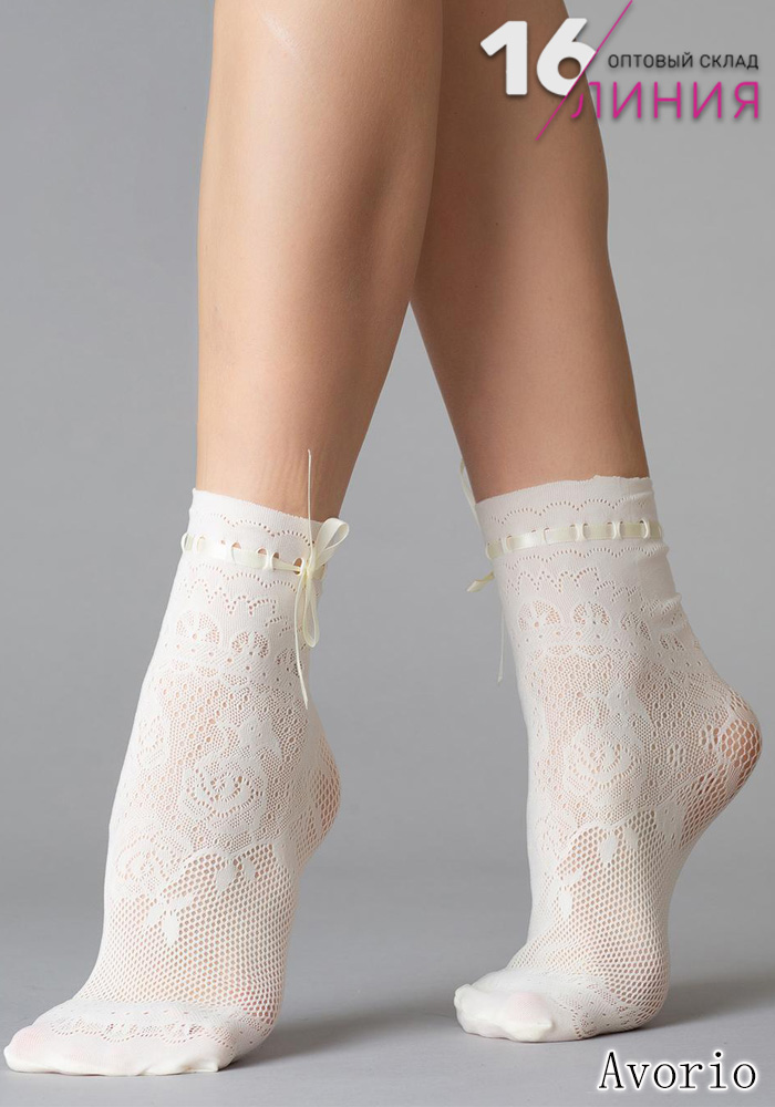 Ажурные фантазийные носки с цветочным узором. У модели укрепленный мысок и комфортная резинка с атласной лентой.