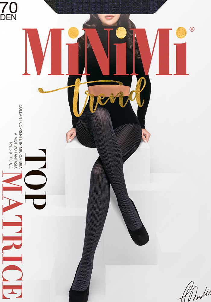 Непрозрачные фантазийные колготки из бархатистой микрофибры с геометрическим узором в виде матрицы, плотностью 70 ден, с широким комфортным поясом, хлопковой ластовицей и плоскими швами. Микрофибра отлично впитывает влагу, сохраняет тепло и приятно ощущается на теле, а эластан обеспечивает превосходное облегание ножки.