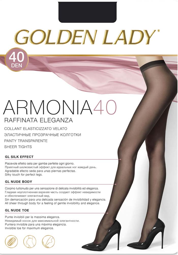 Полупрозрачные шелковистые колготки плотностью 40 ден, с гигиеничной ластовицей и укрепленным мыском, формованные.