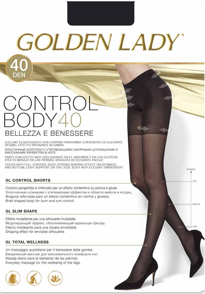 Эластичные поддерживающие колготки с сильным утягивающими эффектом в области живота и ягодиц, массажным эффектом в ноге, элегантными кружевными трусиками, гигиенической ластовицей и комфортными швами.