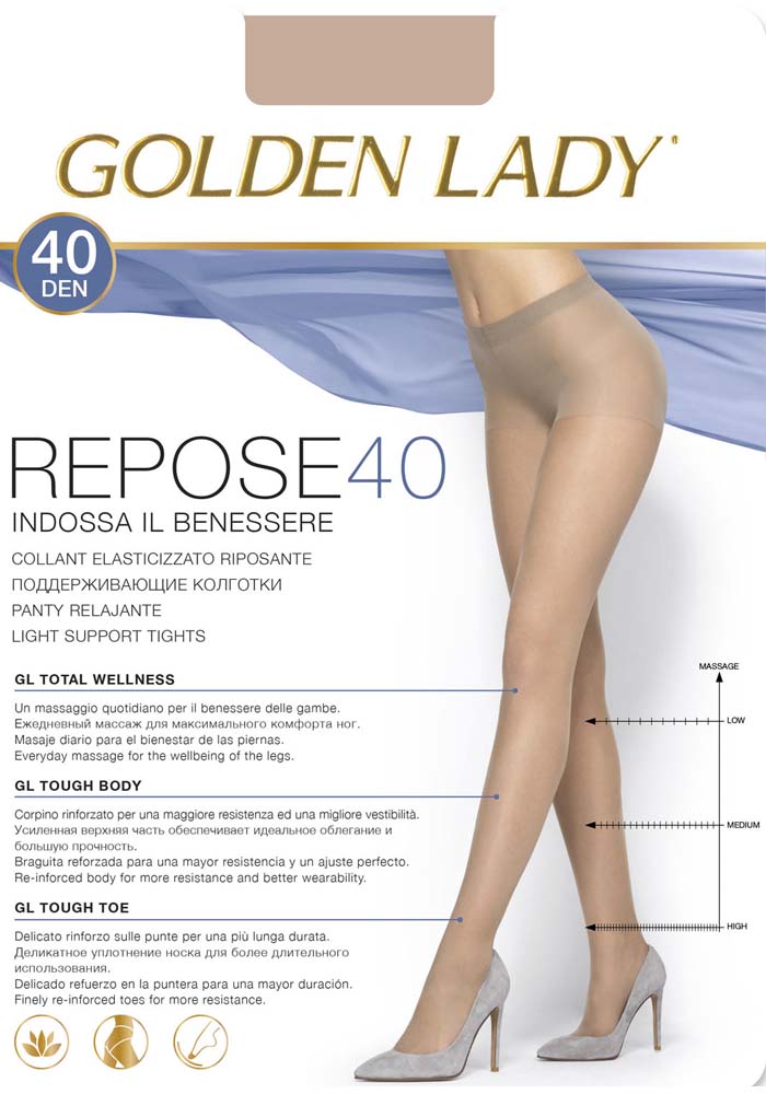 Полупрозрачные шелковистые колготки плотностью 40 ден, с массажным эффектом, уплотненными шортиками и усиленным мыском.