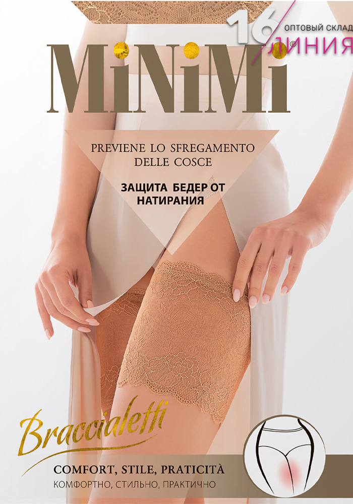 Кружевные бандалетки шириной 17 см, позволяющие защитить внутреннюю поверхность бедра от натирания и появления раздражения. Модель хорошо держится на ноге благодаря силиконовой резинке. Это отличная альтернатива, которая позволит отказаться от брюк, колготок и панталон в жаркую погоду.