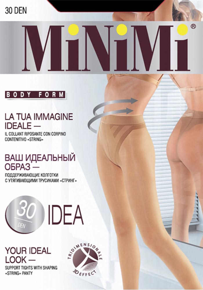 Прозрачные матовые колготки трехмерной эластичности, плотностью 30 ден, с утягивающими трусиками-стрингами, ластовицей, плоскими швами и комфортным широким поясом.