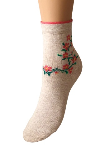 Носки женские льненый с цветным принтом на паголенке, два вида рисунка.